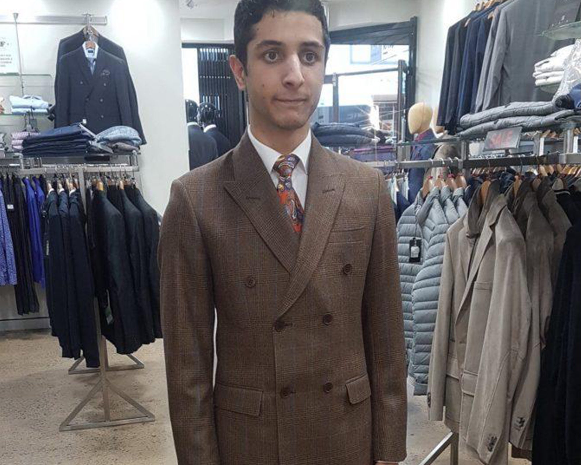 Anoush finally picking up his double breasted bespoke blazer and trousers. He has chosen beautiful cloth by Holland & Sherry Savile Row London.