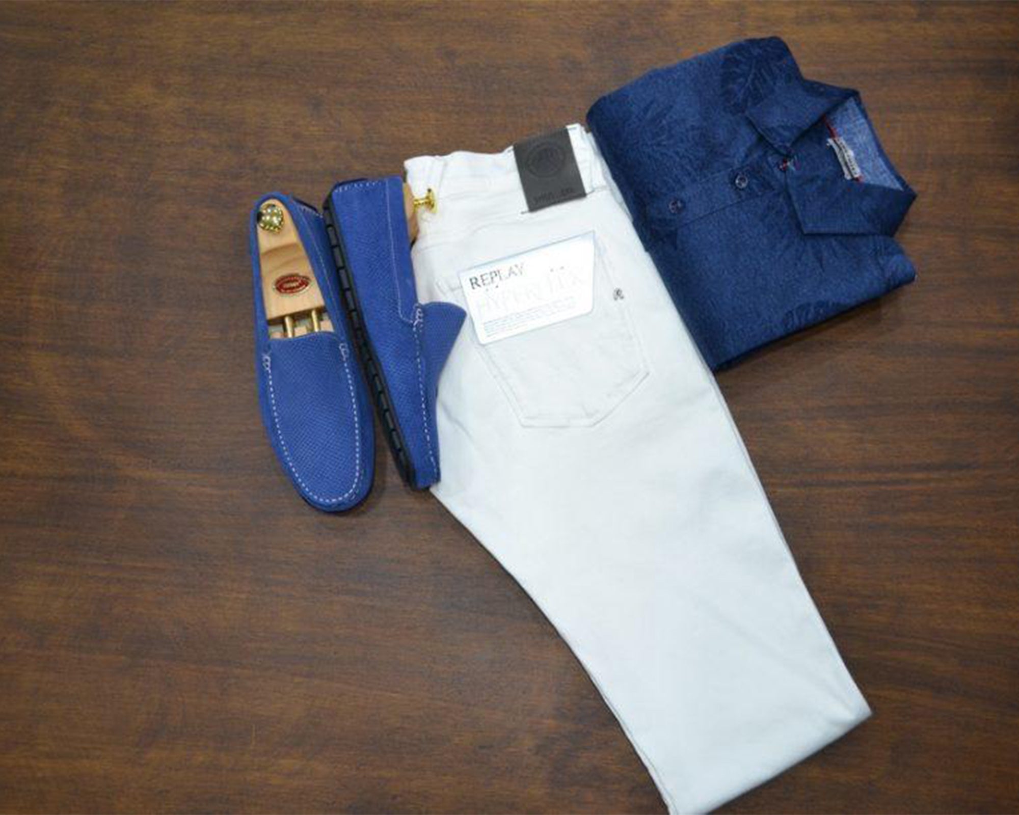 - Blue Jacquard short sleeve polo made with mercerized cotton in Italy by Visconti.
