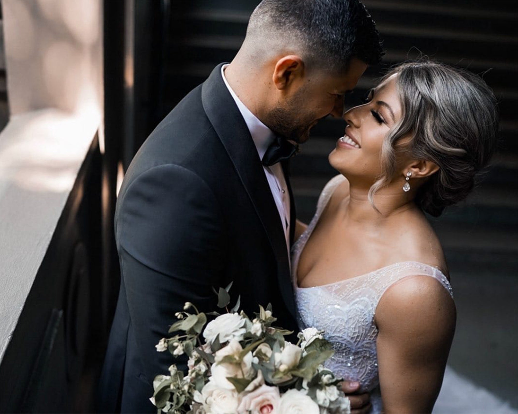 How good do the newlyweds look. For his bespoke suit Tim chose a Ermenegildo Zegna cloth. The shawl collar is made with a silk satin cord imported exclusively from England. You have to see and feel the finished suit to really appreciate the quality. All of our bespoke suits are made in-house by our master tailor Francesco.
