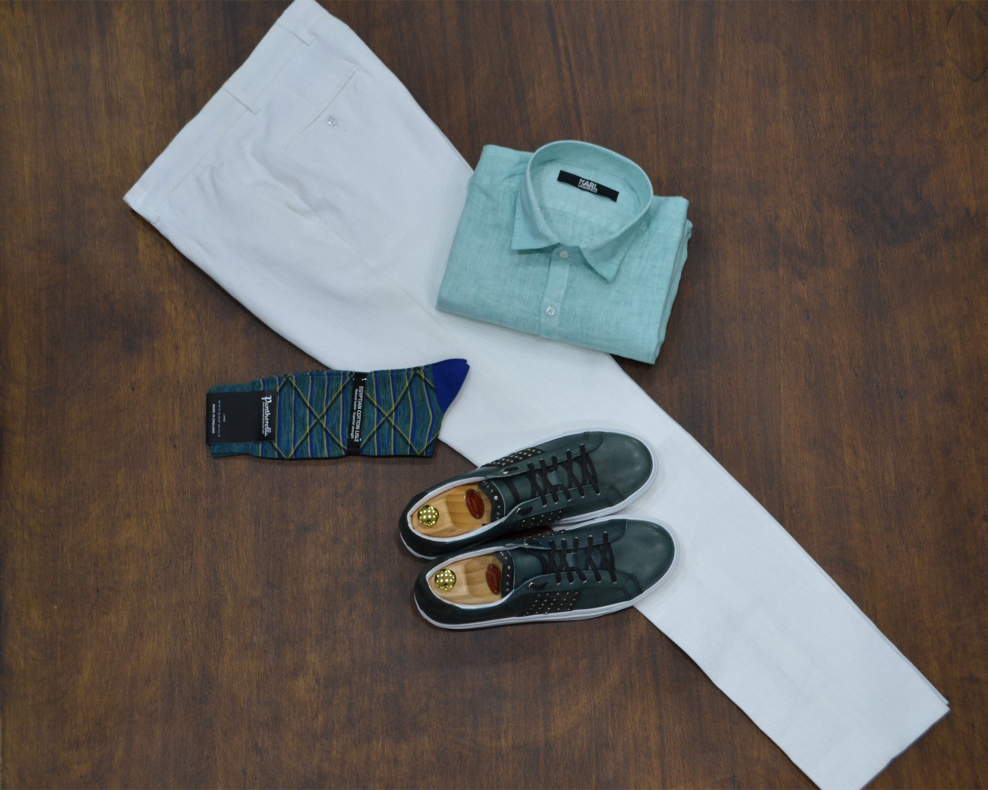 - Australian made, fully lined white slim linen trousers by Vincent & Franks.