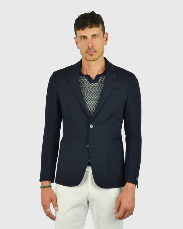 KARL LAGERFELD 524030 NAVY HERRINGBONE BLAZER