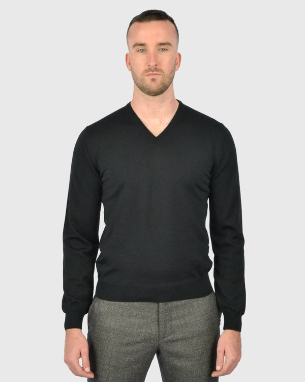 VISCONTI W23V BLACK WOOL V-NECK SWEATER