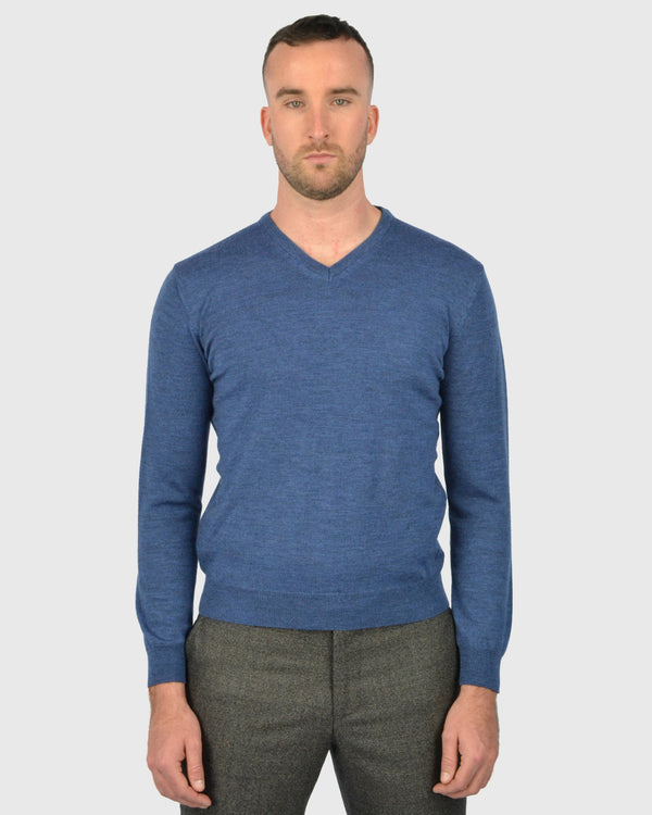 VISCONTI W23V AVIATOR-BLUE WOOL V-NECK SWEATER