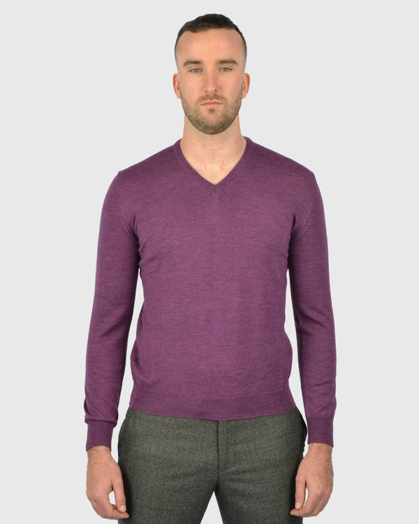 VISCONTI W23V AUBERGINE WOOL V-NECK SWEATER