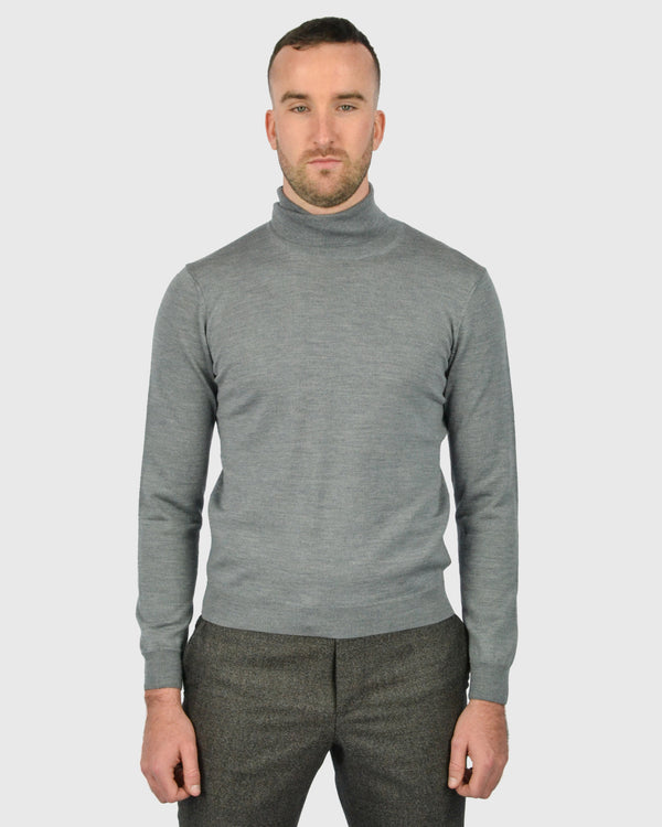 VISCONTI W23R GREY WOOL ROLL NECK / POLO NECK