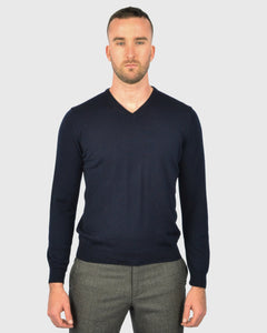 VISCONTI W23V NAVY WOOL V-NECK SWEATER