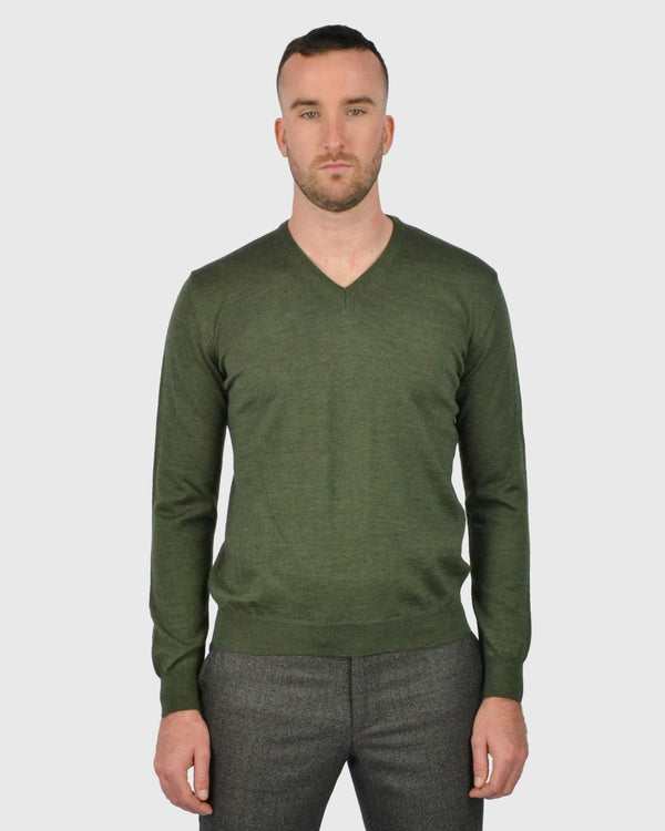 VISCONTI W23V OLIVE-GREEN WOOL V-NECK SWEATER