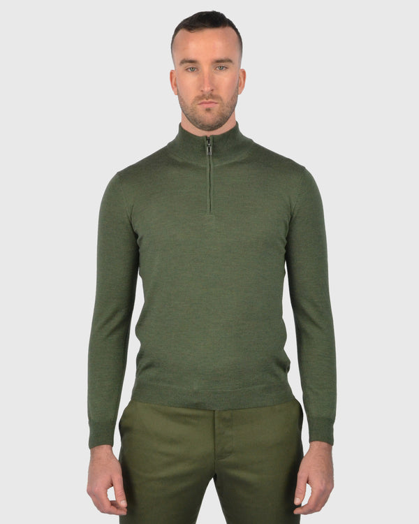 VISCONTI W23Z OLIVE-GREEN WOOL QUARTER ZIP SWEATER