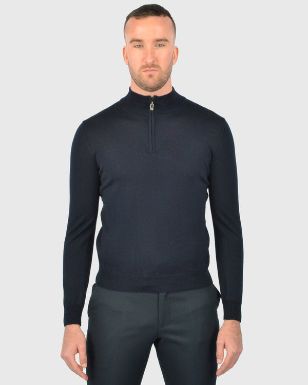 VISCONTI W23Z NAVY WOOL QUARTER ZIP SWEATER