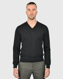 VISCONTI W23V BLACK WOOL V-NECK SWEATER