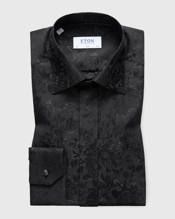 ETON 30507056119 BLACK JACQUARD SLIM SC SHIRT.