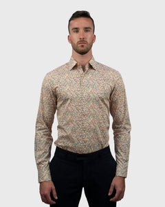 VINCENT & FRANKS S183638211C BROWN FLORAL LIBERTY PRINT SLIM SC SHIRT