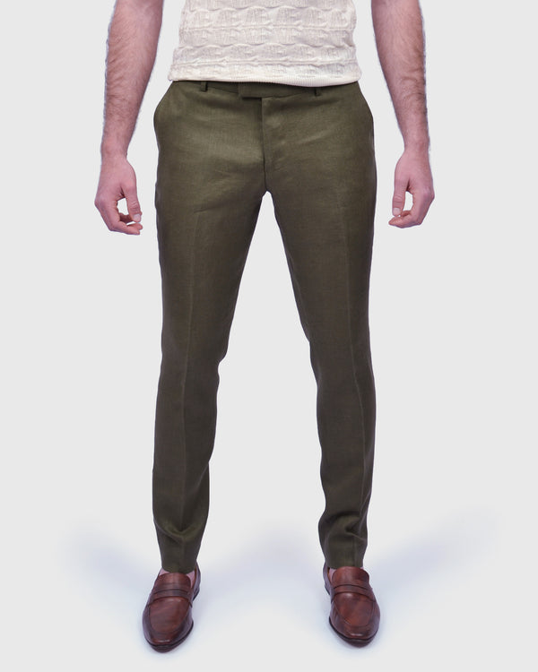 VINCENT & FRANKS S197641 SLIM KHAKI LINEN TROUSER