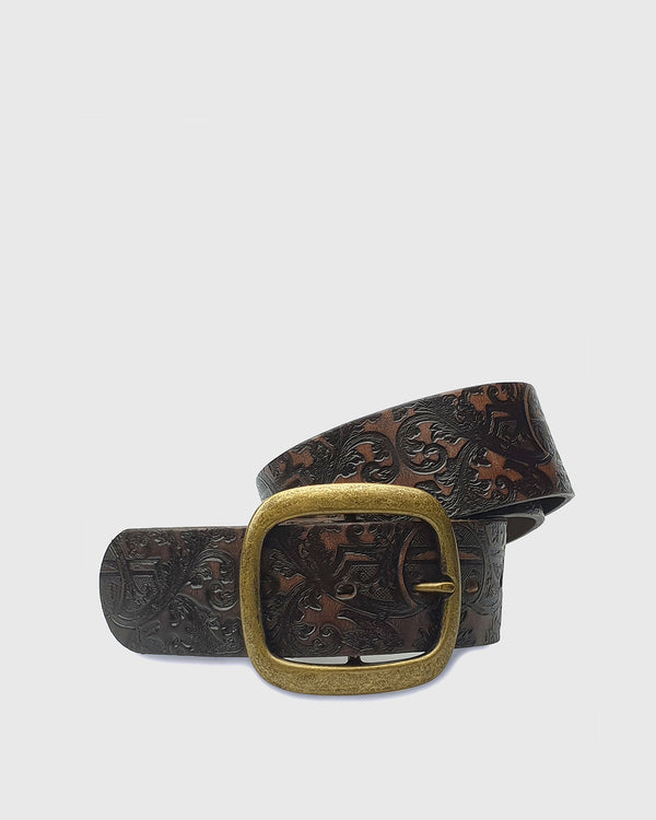 VINCENT& FRANKS / ROUGE 651E EMBOSSED BROWN LEATHER BELT