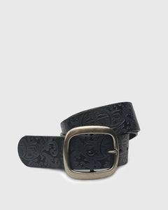 VINCENT& FRANKS / ROUGE 651E EMBOSSED BLACK LEATHER BELT