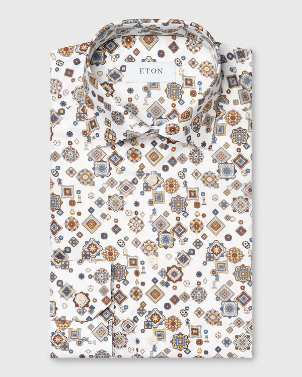 ETON 10001216499 MEDALLION PRINT WHITE SLIM SINGLE CUFF SHIRT