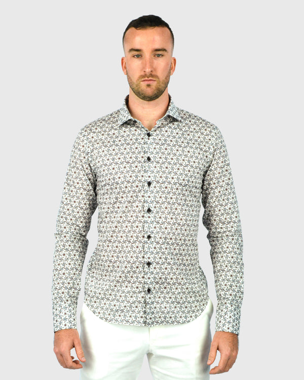 VINCENT & FRANKS W2303632108C CHOCOLATE LIBERTY PRINT SLIM SC SHIRT