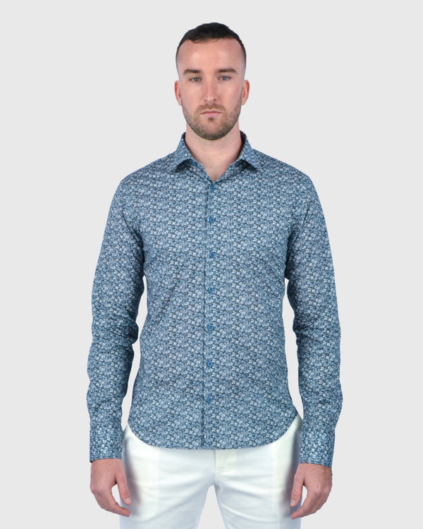 VINCENT & FRANKS W2303639010R BLUE LIBERTY PRINT SLIM SC SHIRT