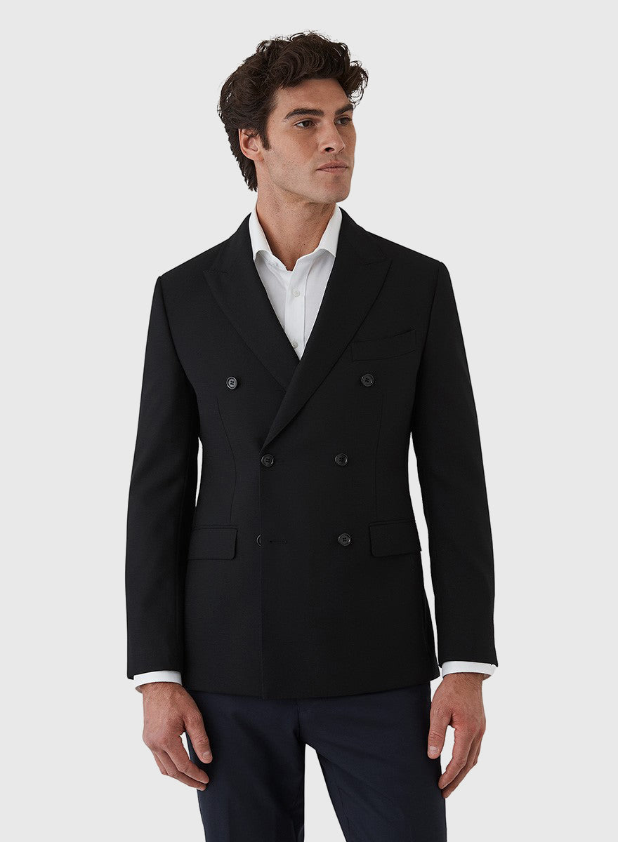 This 6-button double breasted black suit jacket is made with a crêpe textured superfine 120s Wool, it makes a wonderful suit to wear for any occasion.