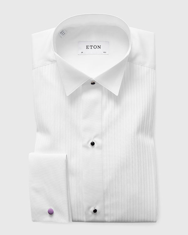 ETON 6315305100 WHITE FRENCH CUFF SLIM PLISSE TUXEDO EVENING SHIRT