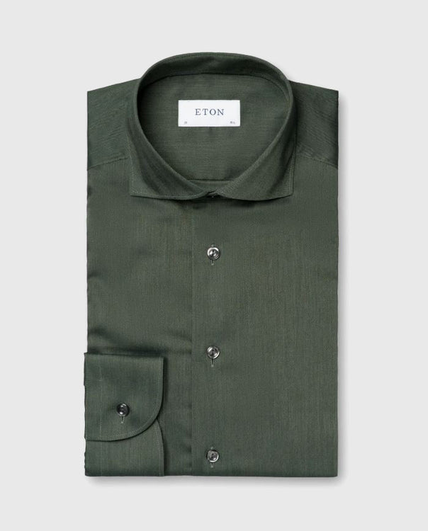 ETON 10001277568 GREEN HERRINGBONE SLIM SINGLE CUFF SHIRT